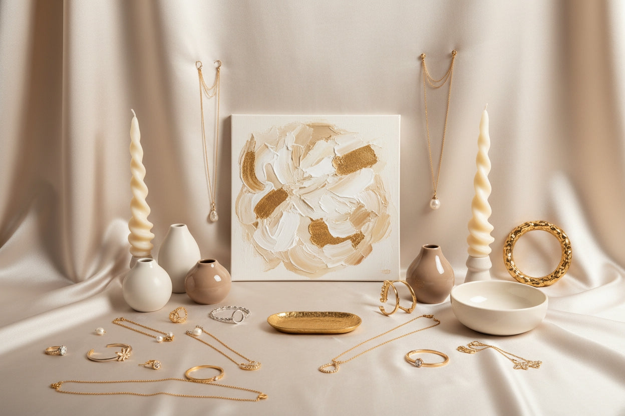 Our three distinctive collectives—premium wall art, refined jewelry, and elegant home décor—are the result of expert curation and discerning taste-making. We don't follow trends; we define them. Every piece is selected for its superior materials, exceptional craftsmanship, and enduring design. From carefully sourced artworks to meticulously crafted jewelry and thoughtfully curated furnishings, each item represents our unwavering commitment to lasting quality.